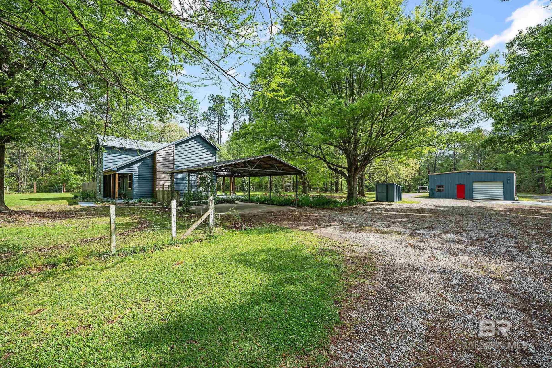 Renovated Farmhouse on 3 Acres + 57x30 Workshop. Updated 4BR/2BA farmhouse on 3 private acres featuring an open layout, high ceilings, and a spacious primary suite with jetted tub & separate shower. 57x30 commercial workshop with 4 roll-up doors, 50-amp service & RV hookup?ideal for business or hobbies. Fortified roof, tankless water heater, double carport, no HOA. Prime access to I-10, I-65 & Hwy 59. Move-in ready with endless potential. Buyer to verify all information during due diligence.